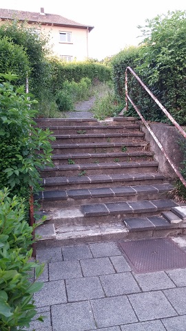Nachdem uns von Anwohnern zugetragen wurde, in welch kritischem Zustand sich die Verbindungswege zwischen Nordring, Röntgenstraße, Hofstattstraße und („kleiner“) Bismarckstraße befinden, konnte sich Stadtratskandidat Lothar Geisinger heute selbst hiervon überzeugen. Die Fußwege sind hier stark mit Unkraut überwuchert, die Treppenwege sind marode. Lose Betonplatten stellen eine Gefahr für Fußgänger dar.